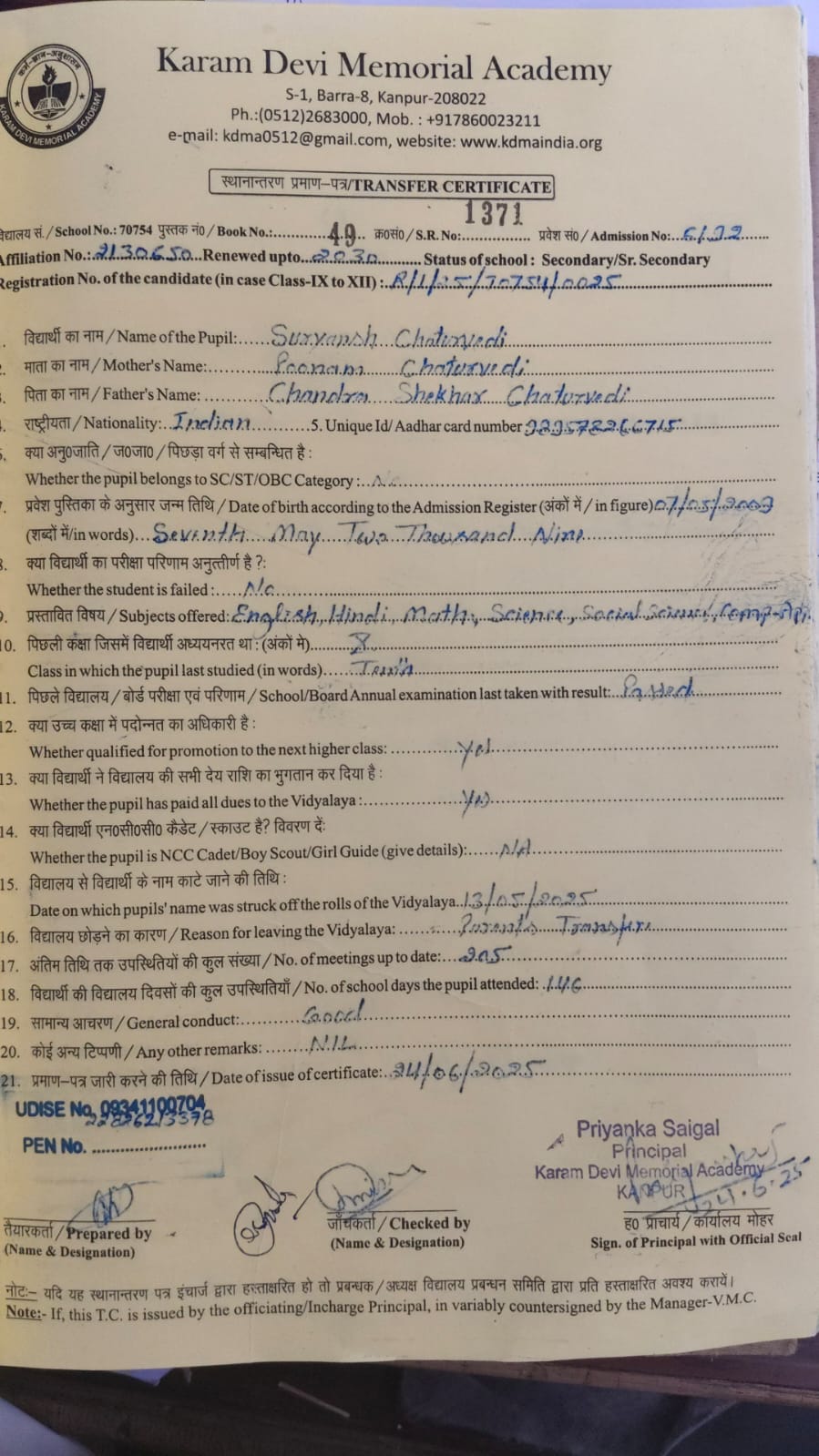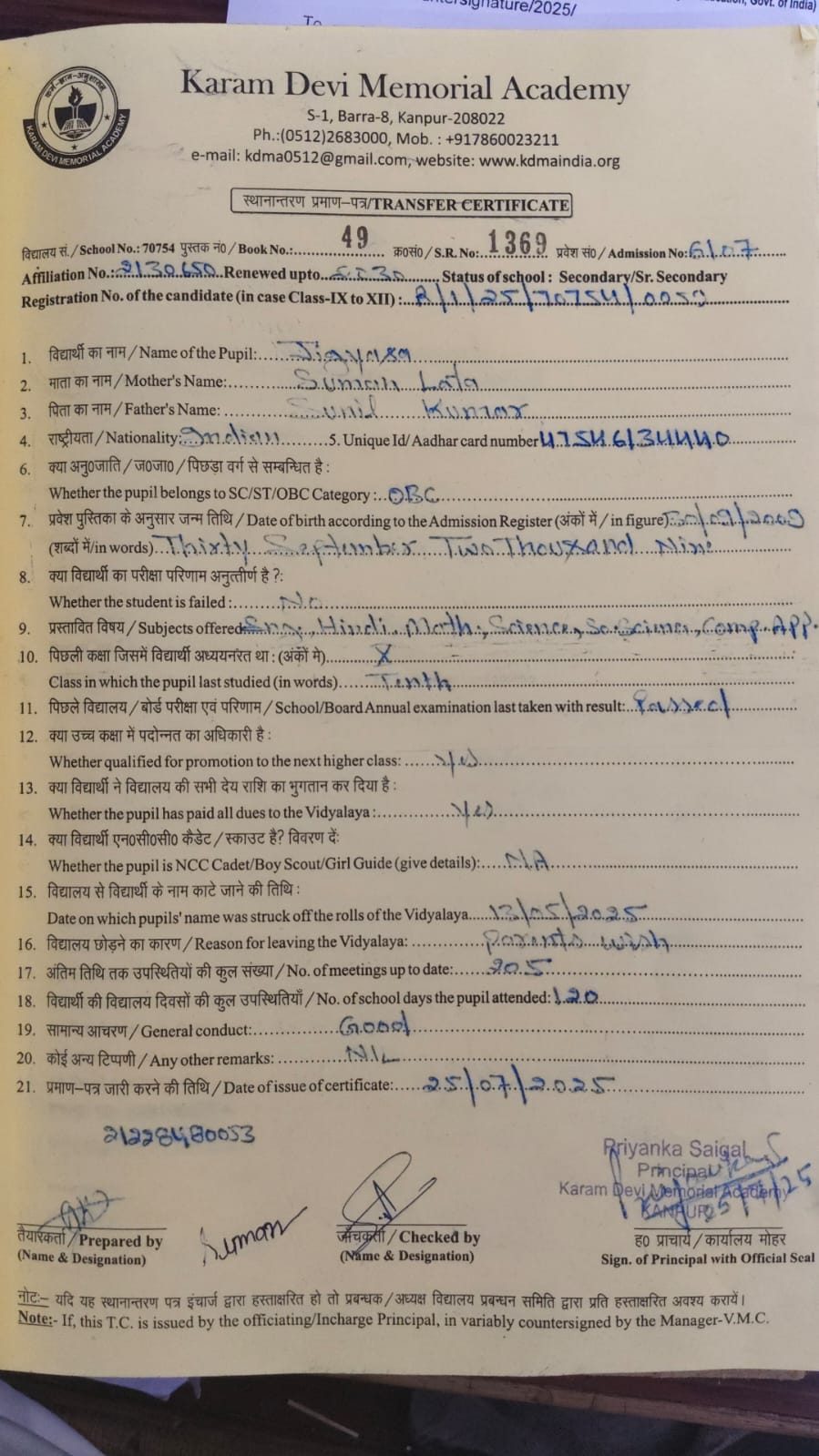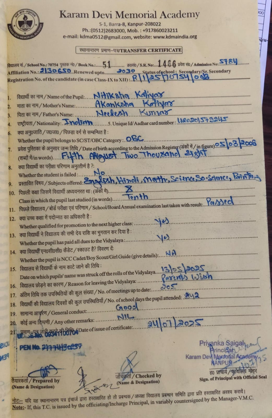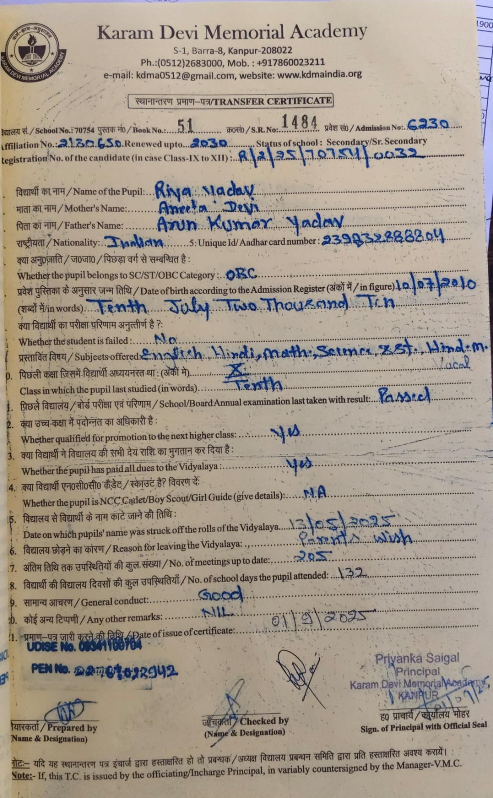 | 8 | 1484 | Riya Yadav | View TC of Riya Yadav |