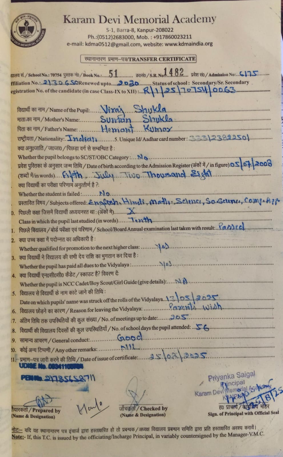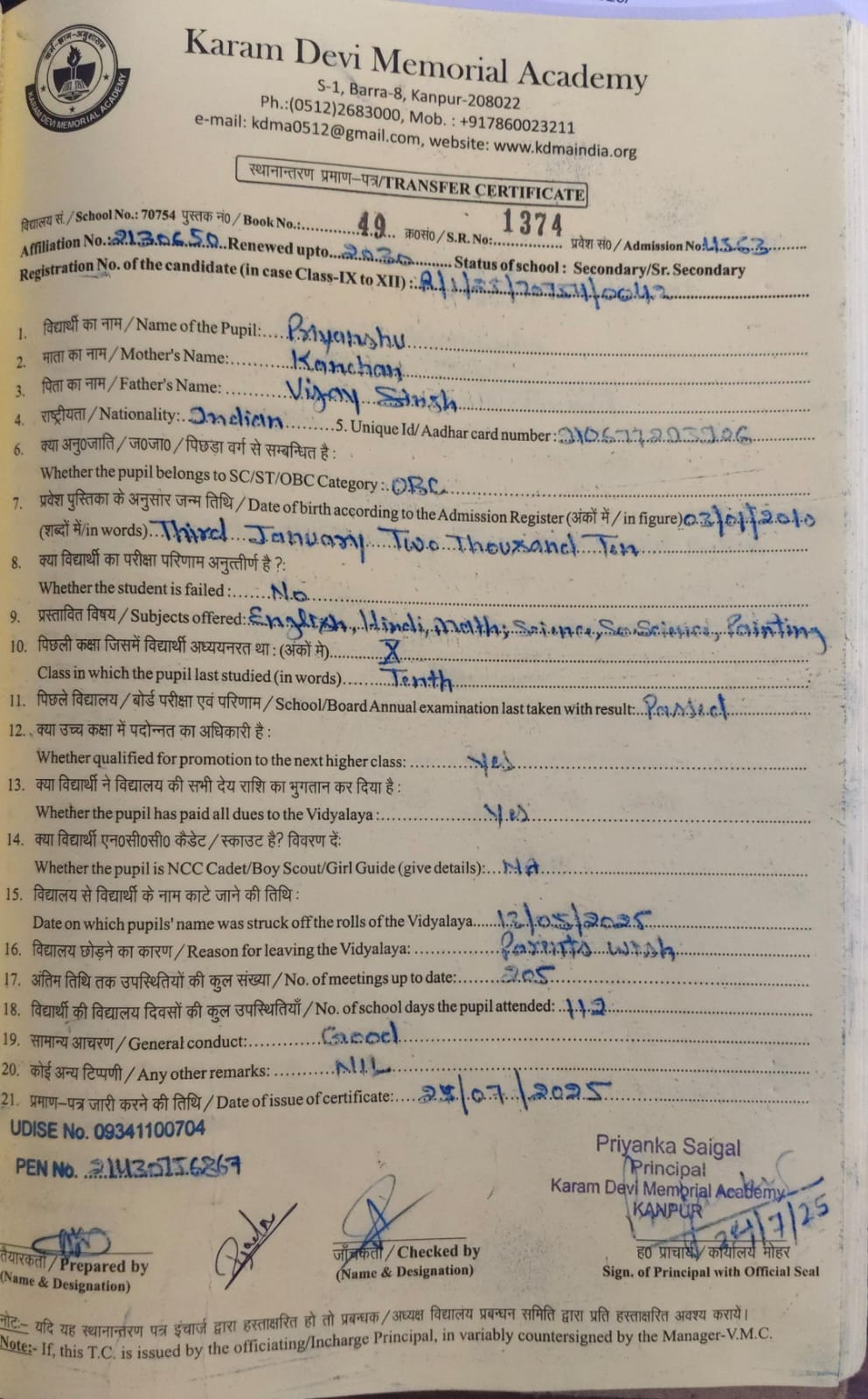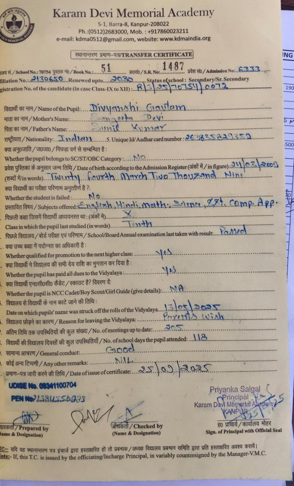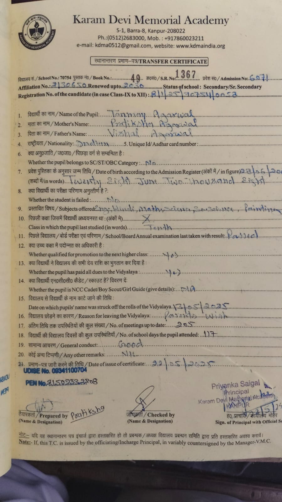 | 8 | 1484 | Riya Yadav | View TC of Riya Yadav |