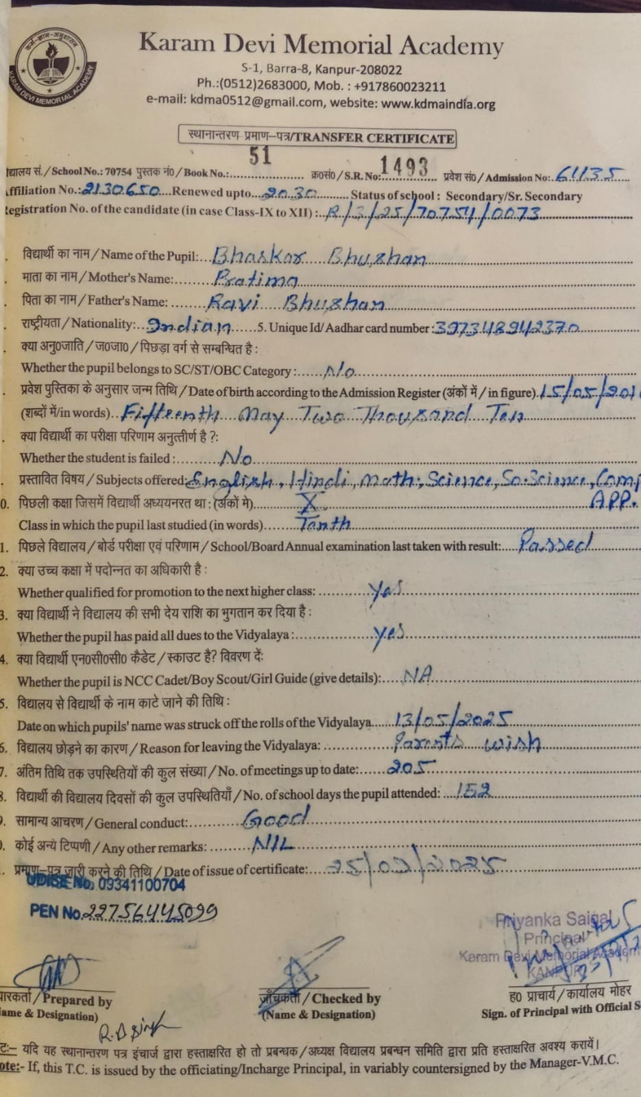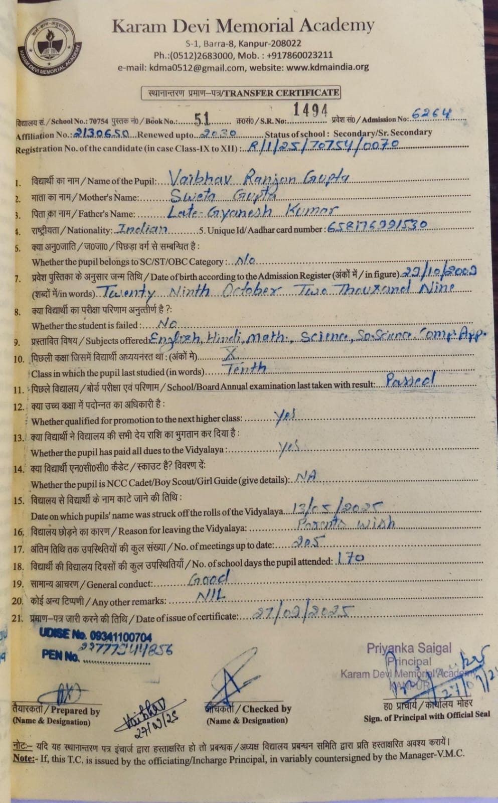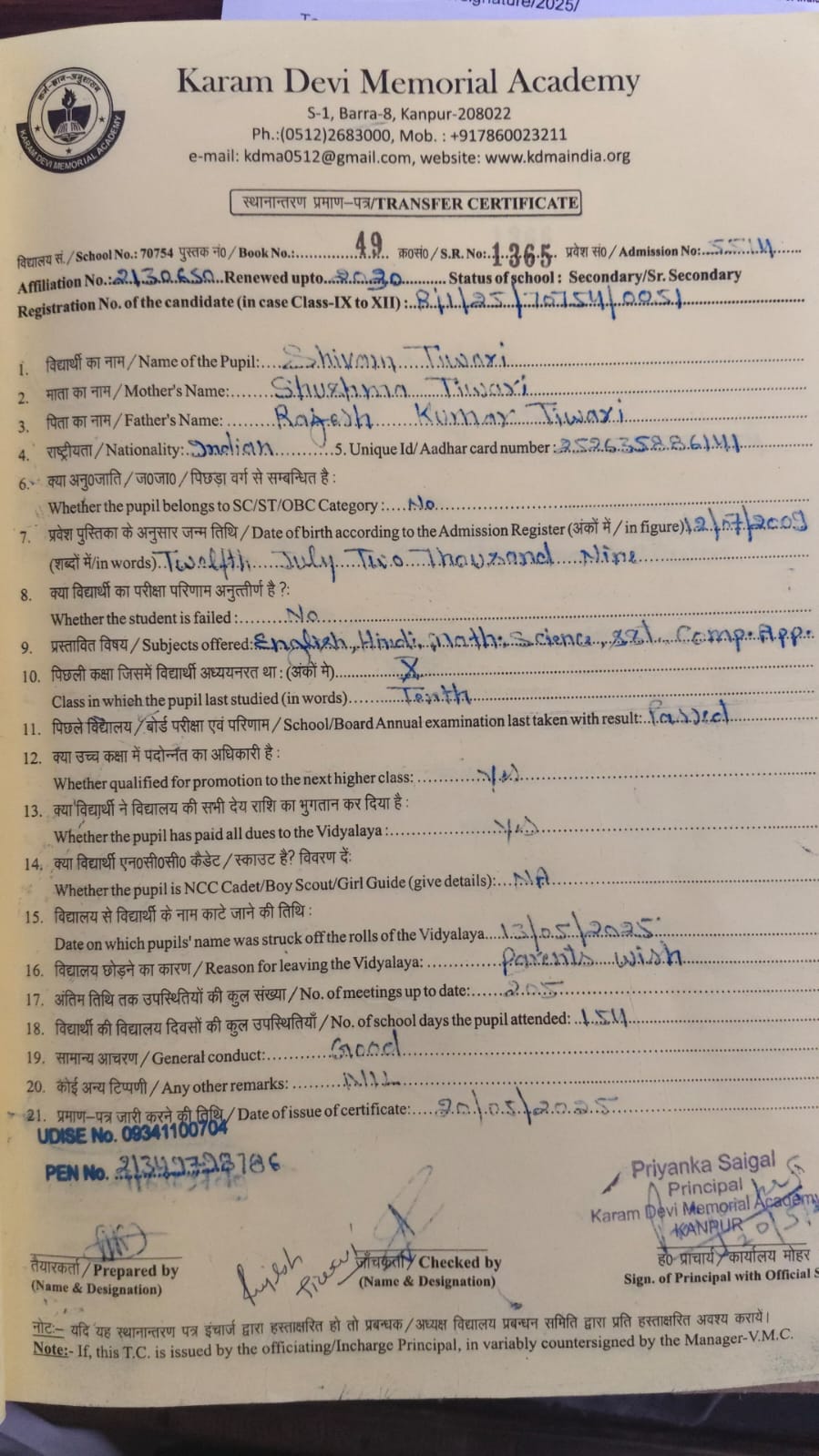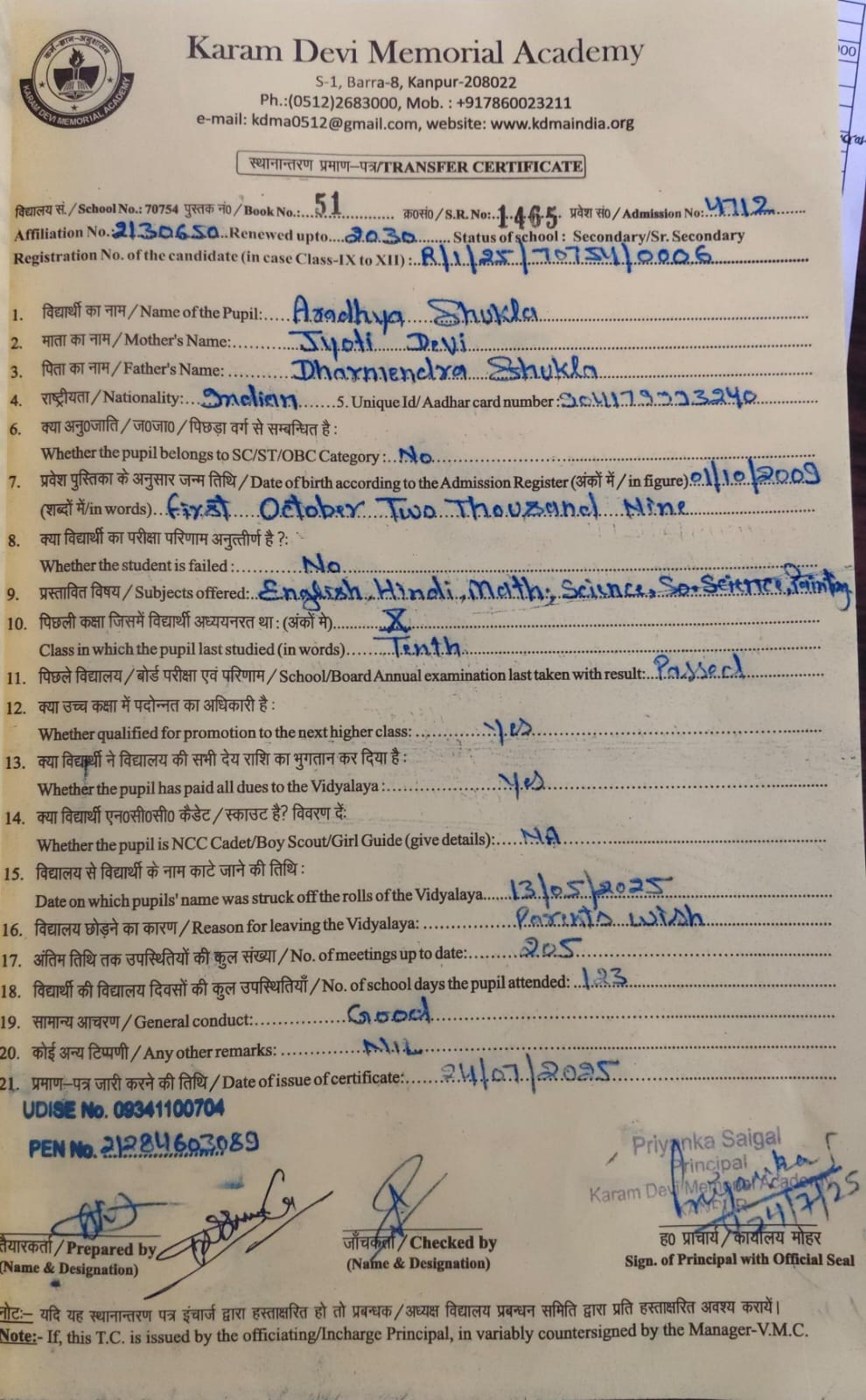 | 8 | 1484 | Riya Yadav | View TC of Riya Yadav |