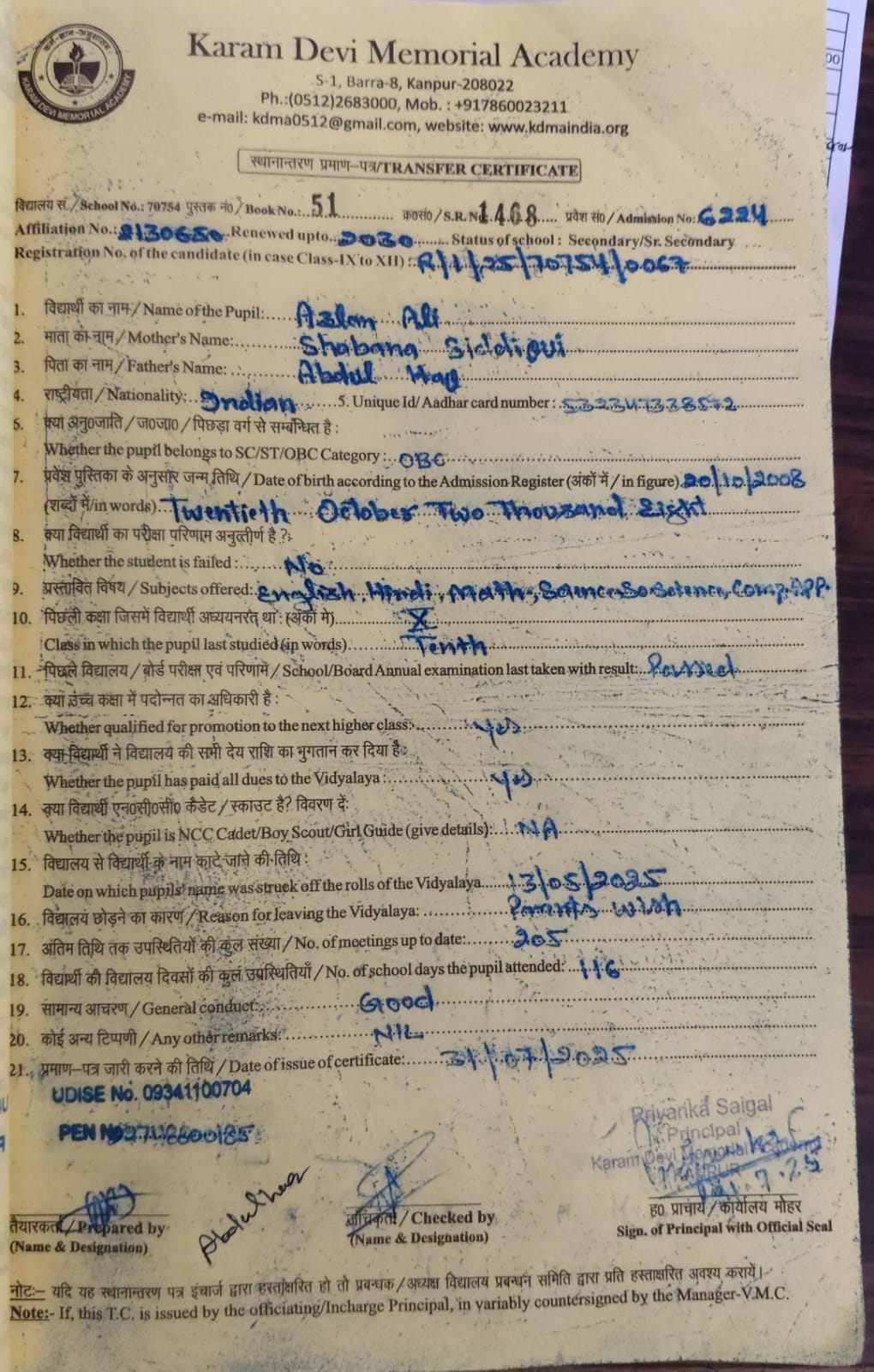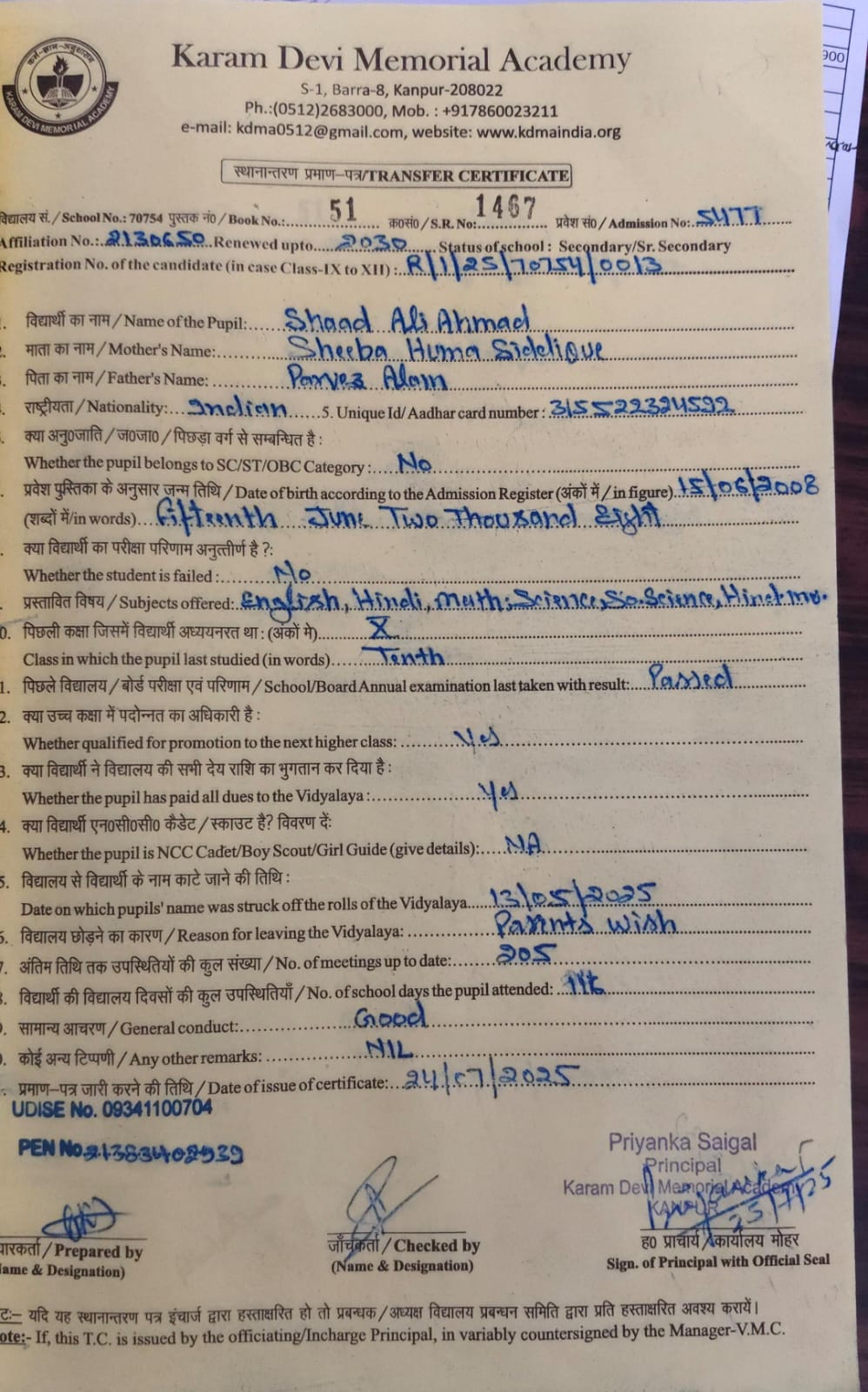 | 9 | 1467 | Shaad Ali Ahmad | View TC of Shaad Ali Ahmad |